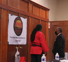 Ms. Asia Jordan tested for her first belt by Grandmaster Zeke Sistrunk